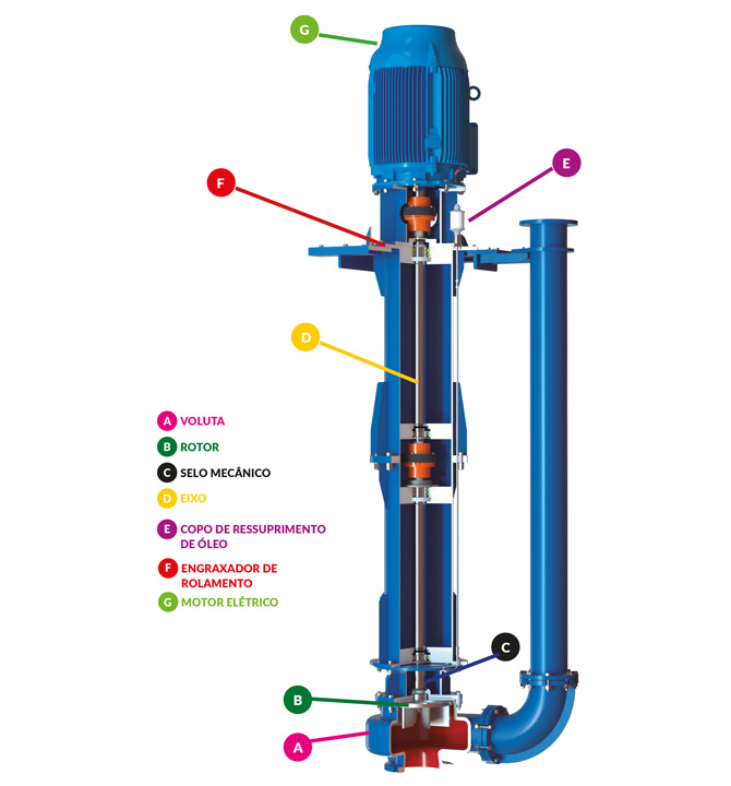 Por operar dentro do fluído bombeado, a bomba vertical dispensa escorva.